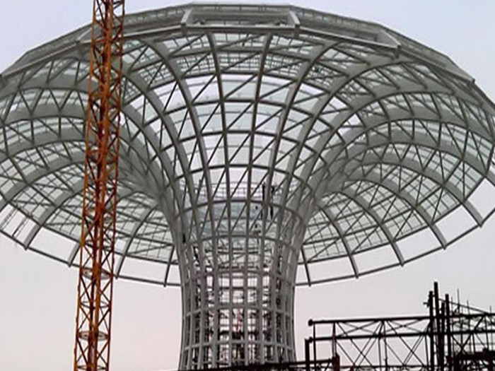 二、球形网架结构因其结构新颖,受力合理,自重轻、用钢量低等优点。如大型体育场馆球形漯河螺栓球网架、公共场馆球形网架、电厂漯河螺栓球网架、水泥工业球形网架、仓储物流球形网架、漯河干煤棚工业球形网架、漯河收费站漯河加油站球形网架、展览中心、影剧院、商场、航站楼、候车厅、工厂漯河车间、仓库、电视塔等球形螺栓球节点网架。国内球形网架结构主要分为:漯河焊接球节点网架及螺栓球节点网架两种。螺栓球节点网架其构件工厂内加工量较大,现场安装便捷,适用于现场工期紧,漯河施工条件、用电量受制约,网架形状复杂、漯河杆件定位困难的异形结构。螺栓球节点球形网架系统基本由漯河杆件、螺栓球、支撑支座等组成。按照节点形式可分为交叉漯河桁架体系、四角锥体系、三角锥体系等。支撑方式多为固定支座支撑。对于大面积、大跨度及有特殊受力或伸缩要求的网架结构可采用橡胶支座、滑移支座、球铰支座等支撑形式,以满足结构自身的受力稳定、均衡,便于内力释放等设计要求。